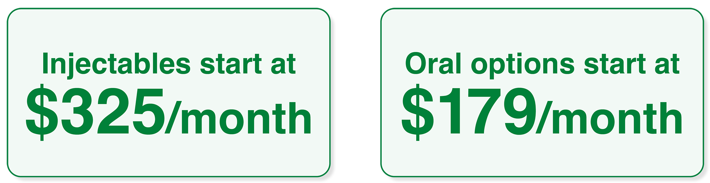 Injectables start at $325/month and oral options start at $179/month.